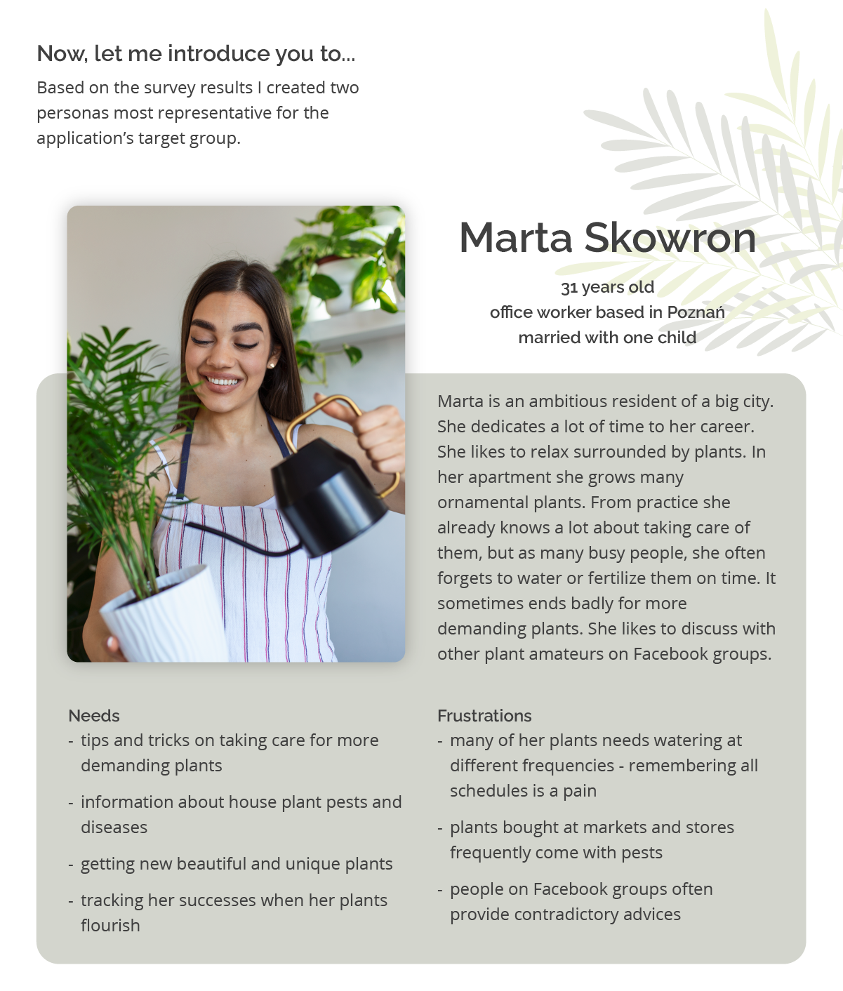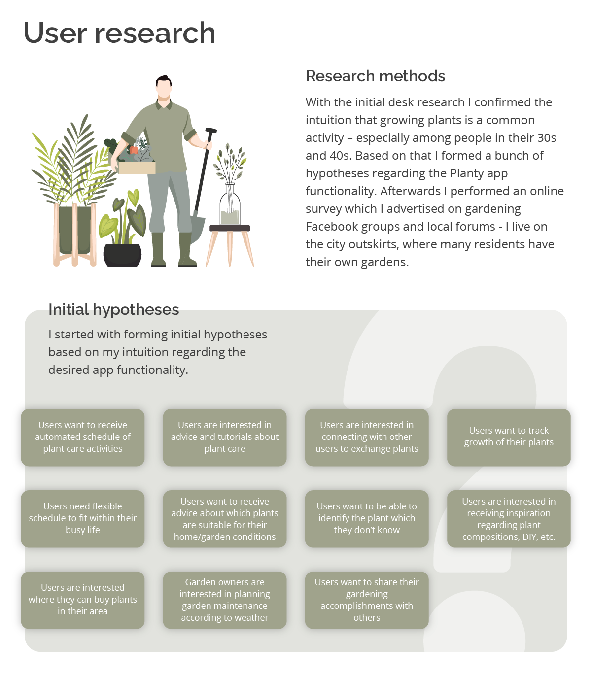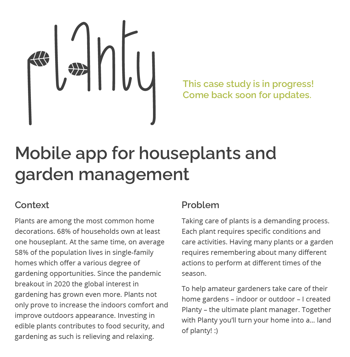 This case study presents the design process of a mobile app for users keeping plants in their homes or having own gardens.